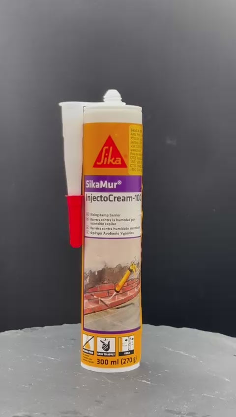 SikaMur ® InjectoCream-100 es un nuevo concepto para el control de humedad ascendente por capilaridad. Es una crema repelente al agua que forma una barrera horizontal impermeable que bloquea la humedad ascendente en muros dealbañilería.